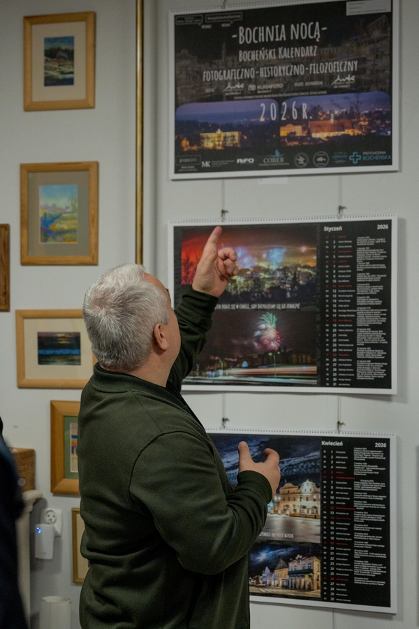 „ Bochnia nocą na rok 2026”. Na kalendarz składają się zdjęcia interesujących widoków Bochni w różnych porach roku. Wszystkie fotografie łączy jeden motyw przewodni: noc. Na każdej karcie kalendarza o formacie 70×50 cm znajdują się ważne daty z historii Bochni oraz autorskie aforyzmy.