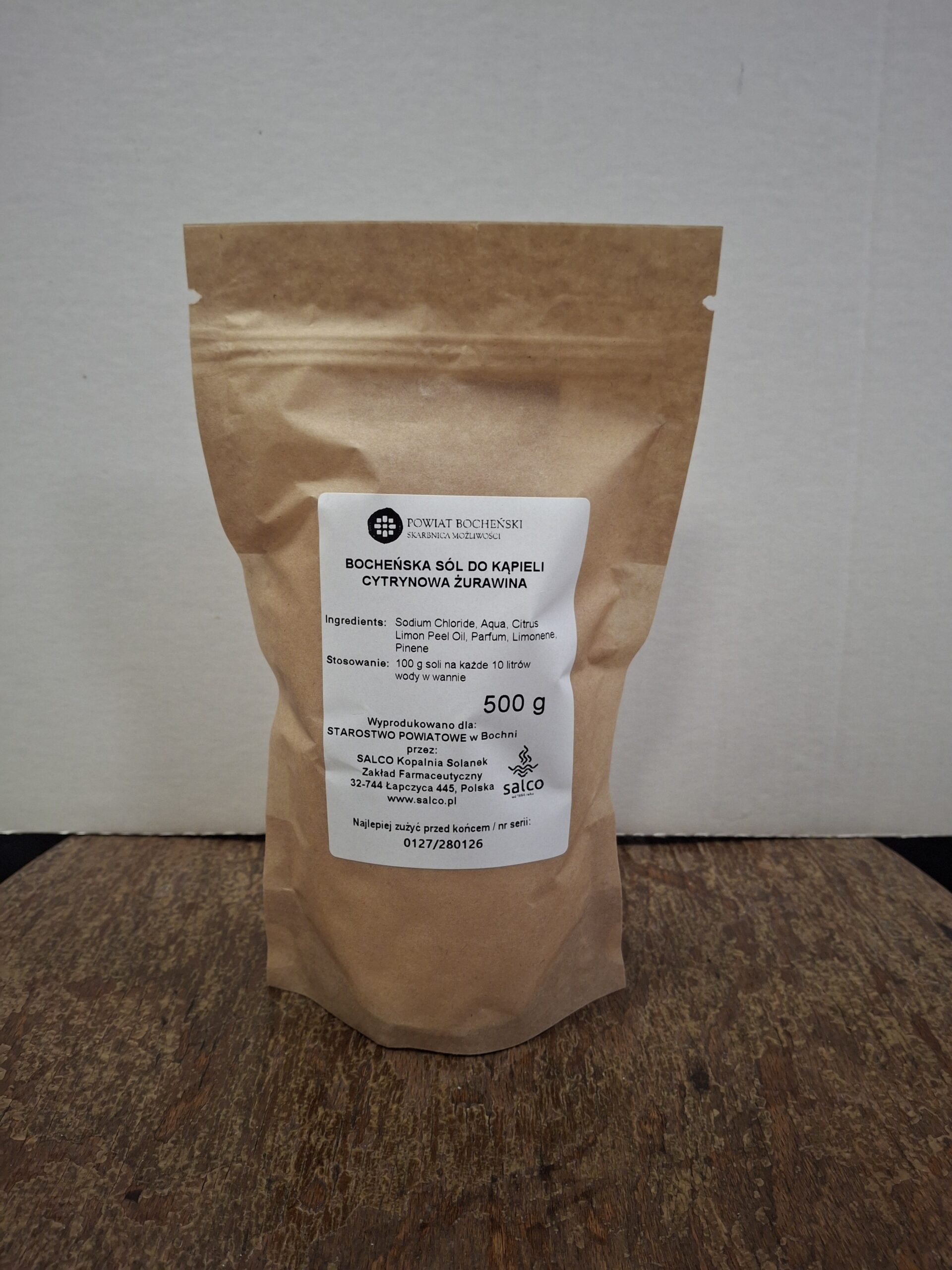 • Wyprodukowane specjalnie dla Starostwa Powiatowego Bochnia przez Salco Kopalnia Solanek